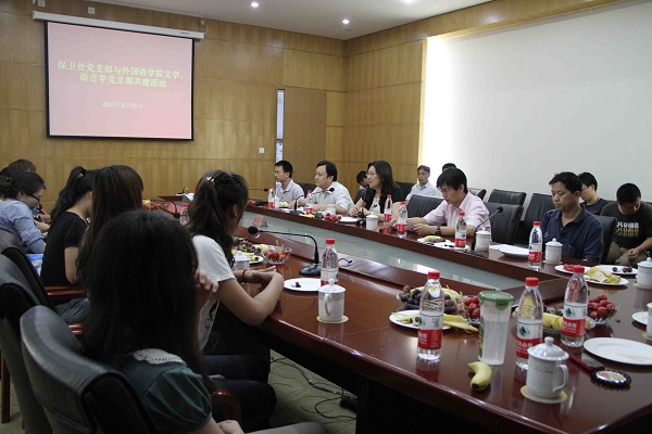 6月25日下午,保卫部(处)党支部与外国语学院研究生文学、语言联合党支部在新主楼第四会议室开展了以“传播安全文化,共创和谐校园”为主题的支部共建交流会。两个支部的全体党员和积极分子参加了共建交流会。